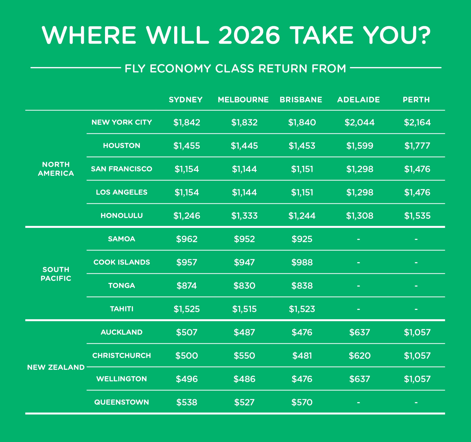 These great destinations and more on sale now with Air New Zealand.